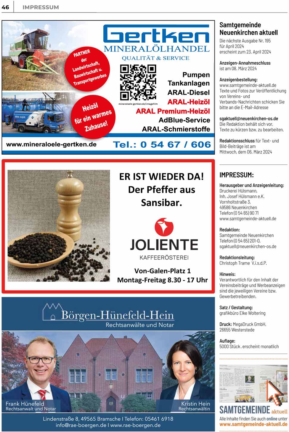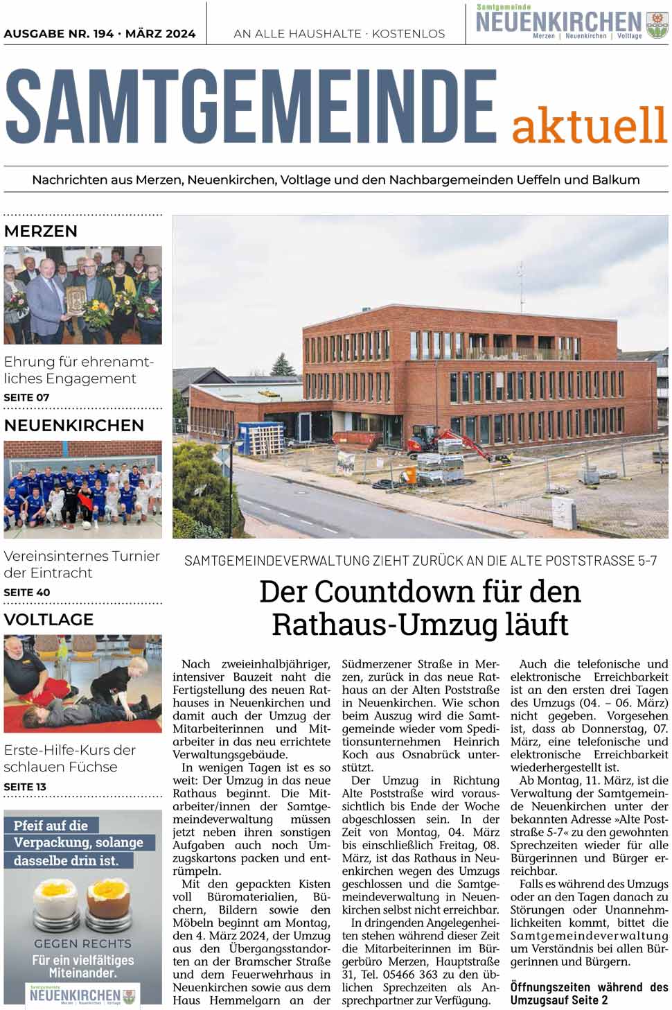 Dies ist die AUSGABE 194 der Samtgemeinde Neuenkirchen aktuell. Viel Spaß beim Lesen!