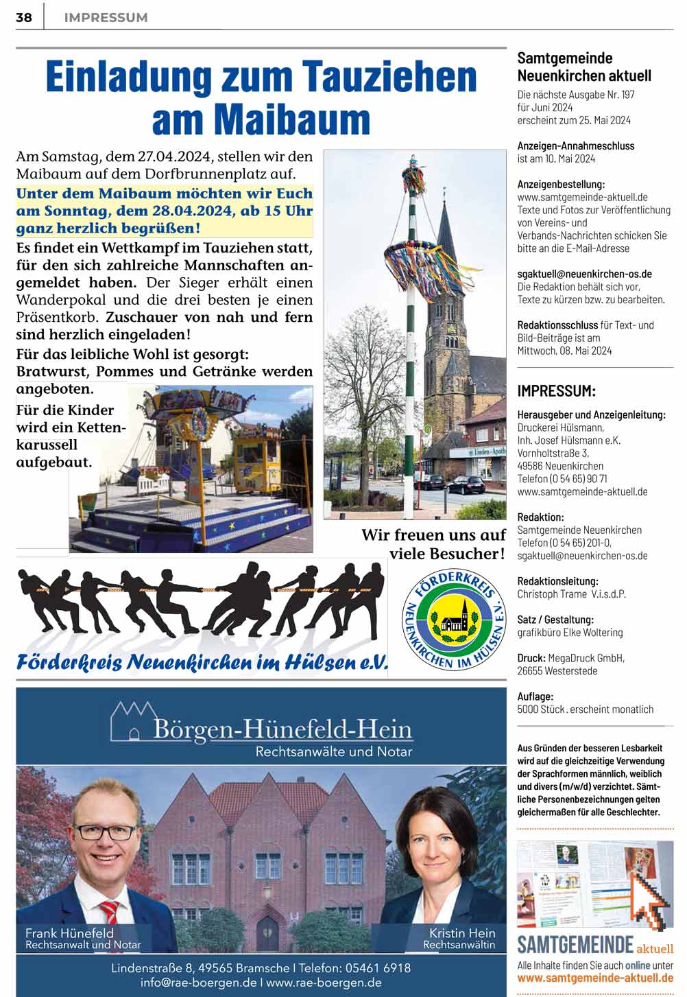 Dies ist die AUSGABE 196 der Samtgemeinde Neuenkirchen aktuell. Viel Spaß beim Lesen!